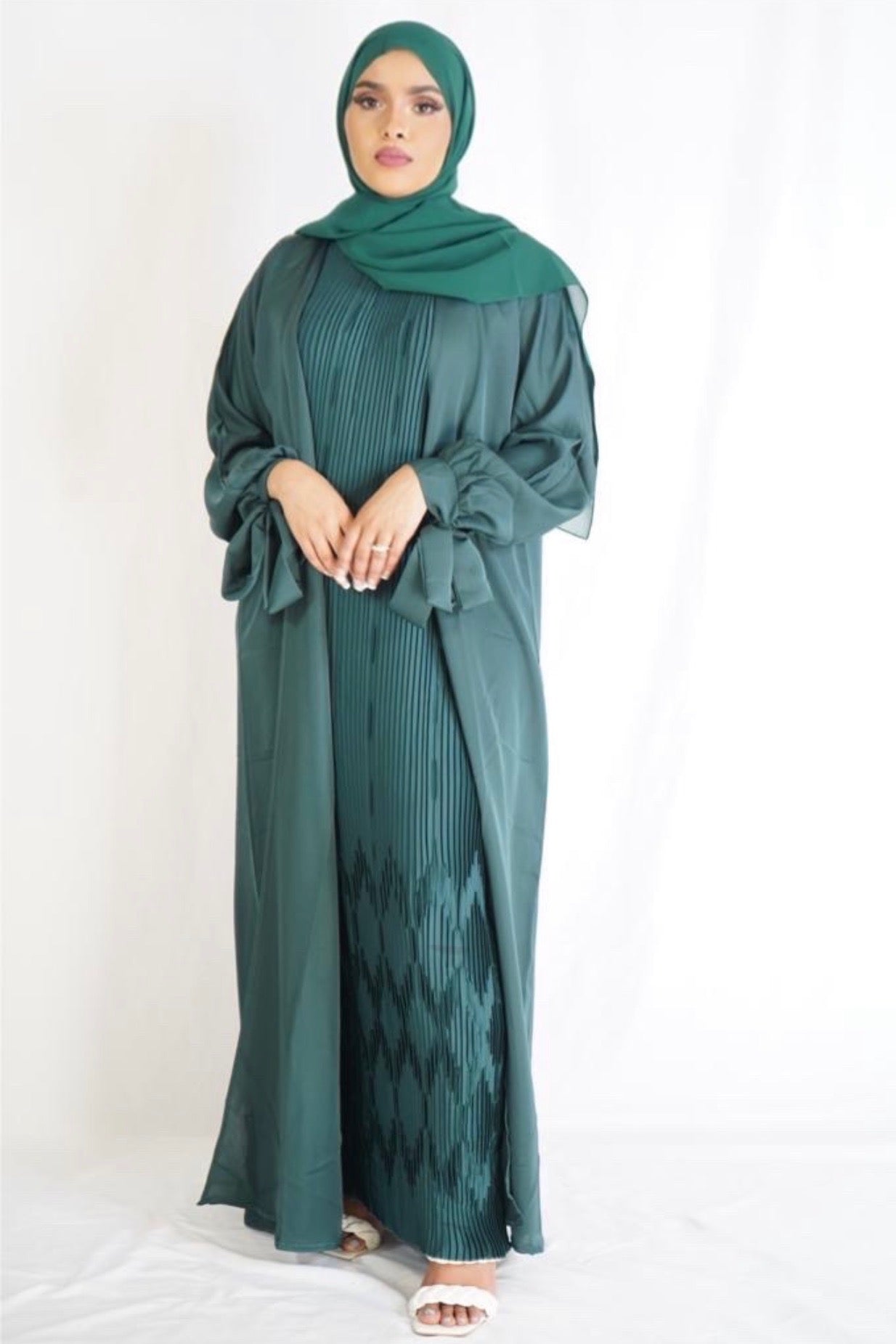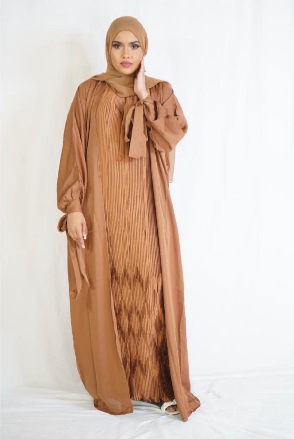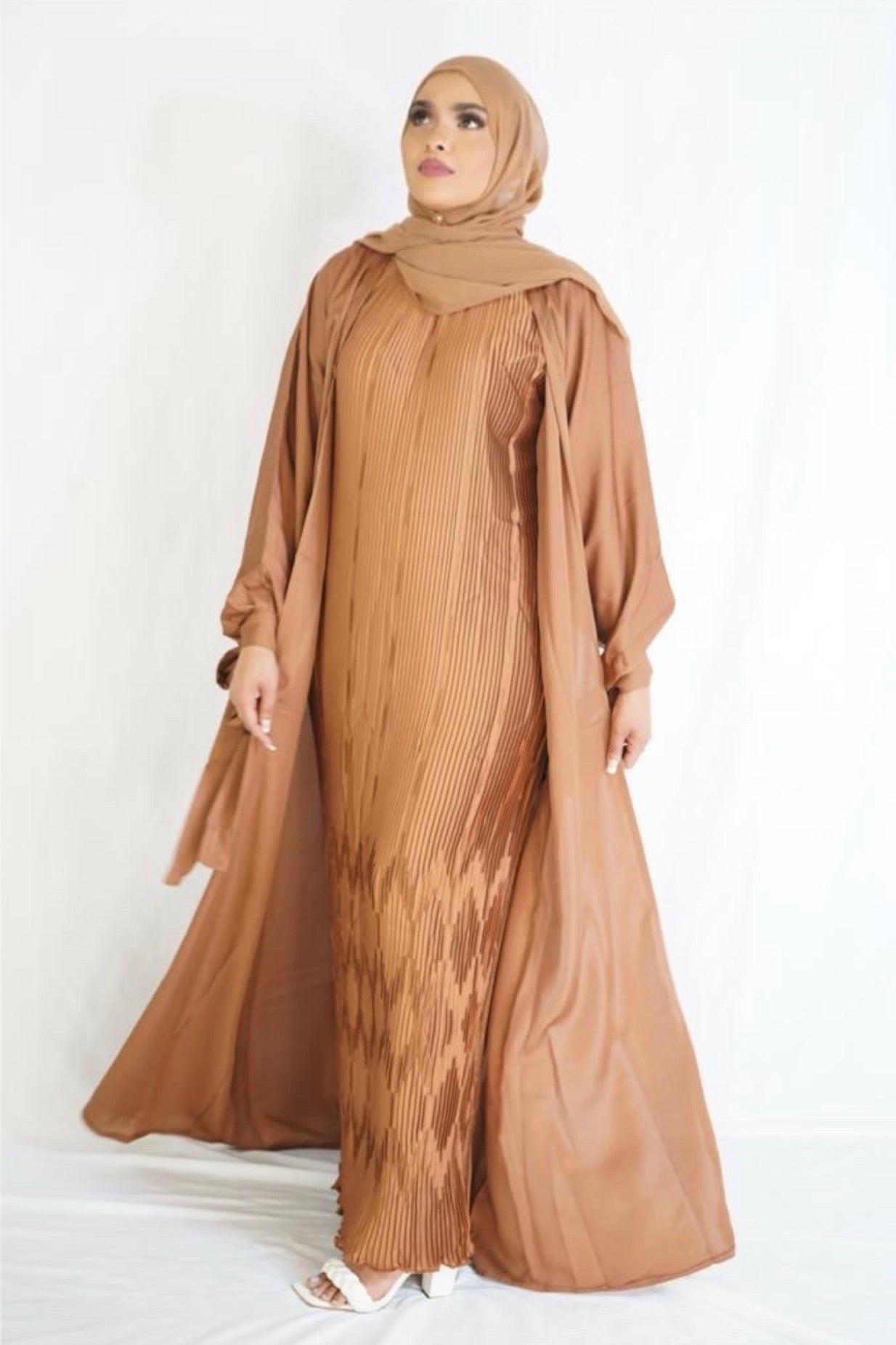 Our Abaya material is breathable and sustainable giving it a comfortable lightweight fit. This is a perfect piece for any special occasions .